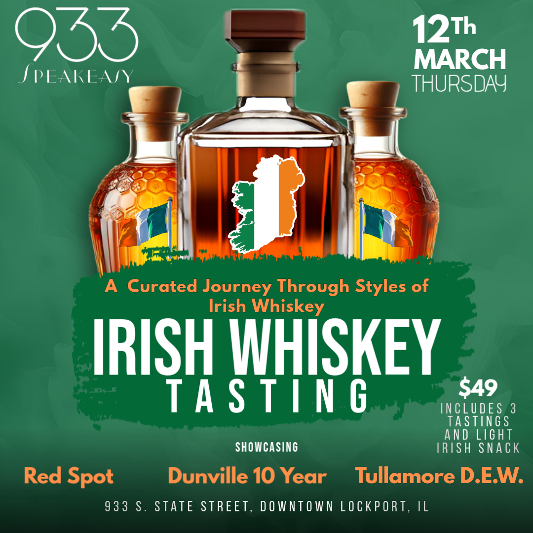 Join us at 933 Speakeasy for an immersive Irish Whiskey Tasting experience designed for both seasoned whiskey lovers and curious newcomers. This guided tasting explores the depth, character, and craftsmanship of Ireland’s most celebrated styles.